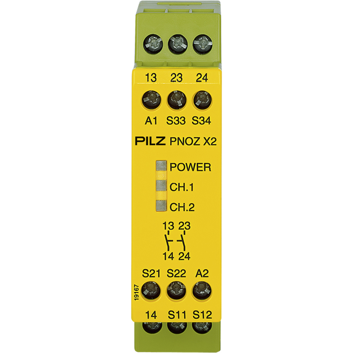 رله ایمنی. ورودی ها: سیم کشی 1/2 کانال با/بدون تشخیص شورت در سراسر کنتاکت ها، خروجی ها: 2 N/O، شروع نظارت شده، UB 24 ولت AC/DC، عرض: 22.5 میلی متر، پایانه های پیچی یکپارچه، مانیتورینگ از E-STOP، گیت های ایمنی.